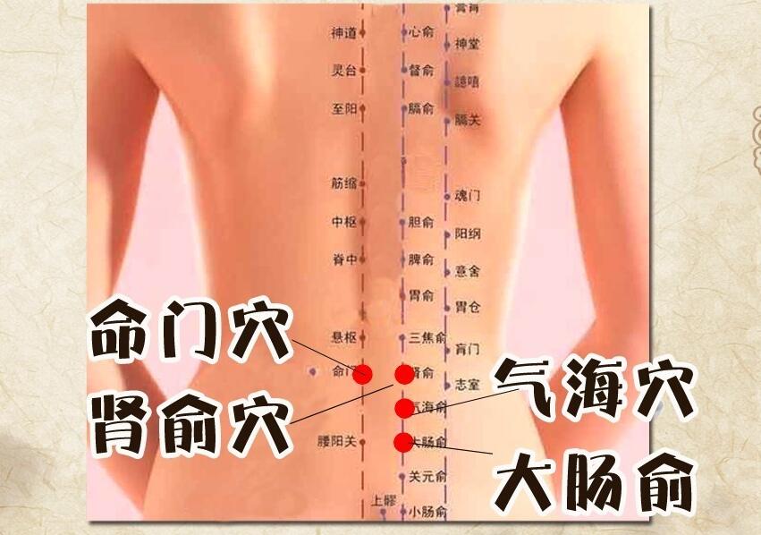 腰部也是有很多的穴位的,比如名门穴、肾俞穴、腰眼穴等穴位,都是重要的穴位,我们平时没事的时候,可以把双手掌心搓热,放到腰部的部位摩擦,或者是叩击腰骶部,每天早晚各一次,这样可以缓解腰酸的效果。